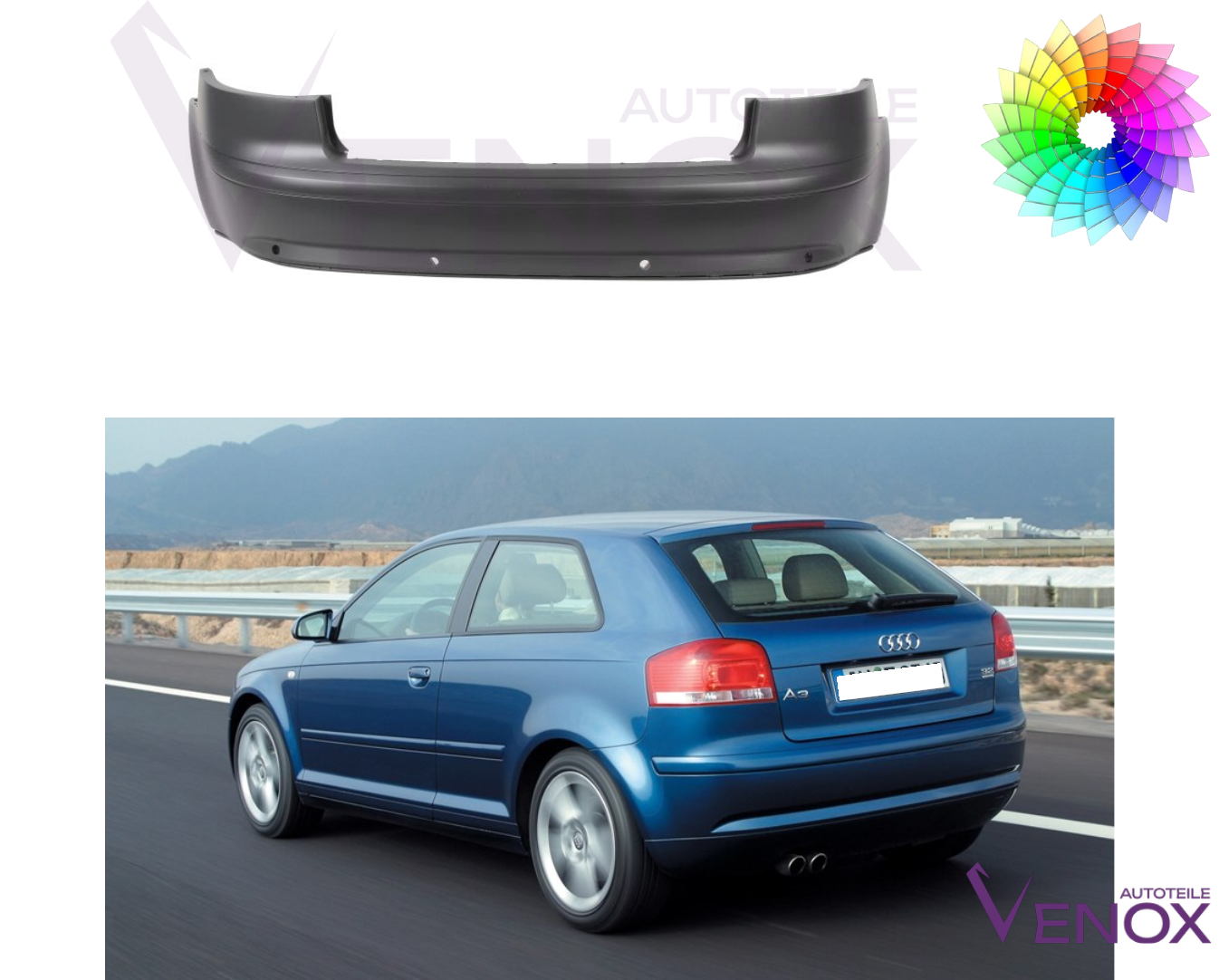 Zadní nárazník Audi A3 8P 03-08 PDC Libovolná barva