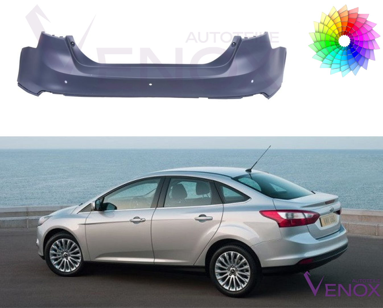Zadní nárazník Ford Focus Mk3 2010-2014 Sdn PDC Libovolná barva