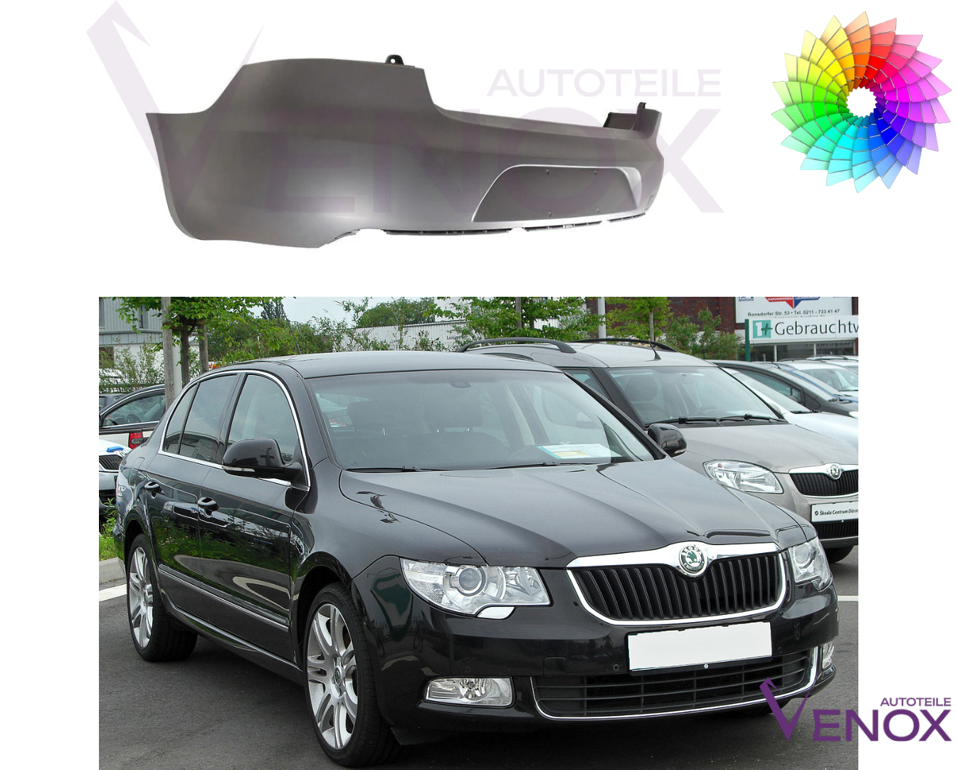 Zadní nárazník Škoda SuperB 08-13 PDC+- libovolná barva